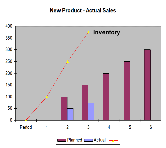 Based on this poor performance, the business implemented a process whereby the sales forecast was used to establish an inventory plan. The actual sales and inventory were compared to plan and a meeting was held every two weeks between the product development, marketing, sales and Supply Chain functions. The result was improved demand-supply balancing in both quantity and timing. Chart 1 explains further sales, production and inventory, and Chart 2, planned and actual inventory.