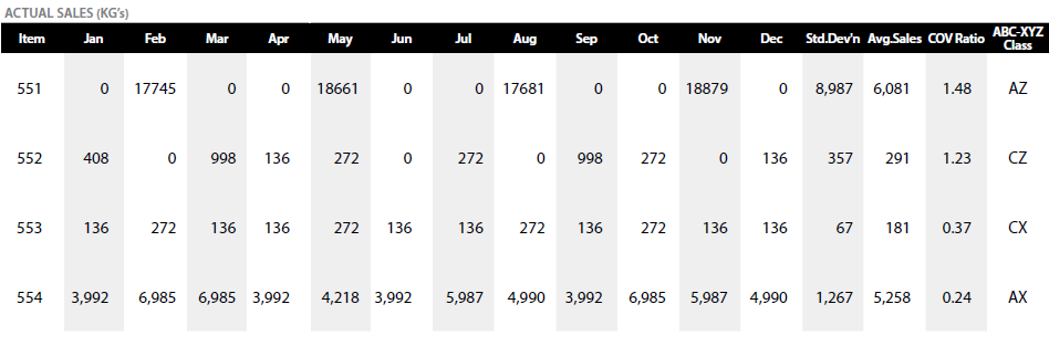 Table 2 | Sample ABC-XYZ Analysis with CZ Item