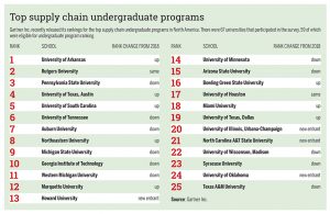 The Supply Chain Management department at the University of Arkansas recently gained national recognition as the No. 1 ranked undergraduate program for supply chain logistics in North America. Global research firm Gartner compiles the rankings every two years.